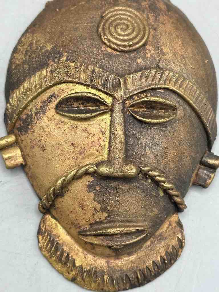 X-Large Heavy African Brass Bearded Mask Pendant - Ghana