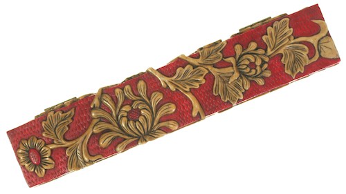 Chrysanthemum Flower Design - Red Long Soapstone Trinket Decor Pencil Box