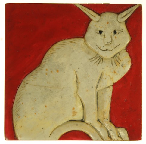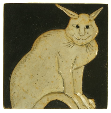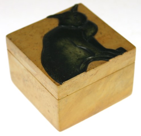 Crouching Cat Design - Small Square Soapstone Trinket Decor Box