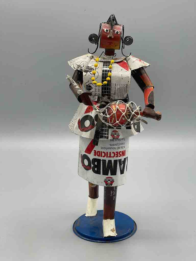African Recycled Labeled Metal Can Contemporary Art Sculpture