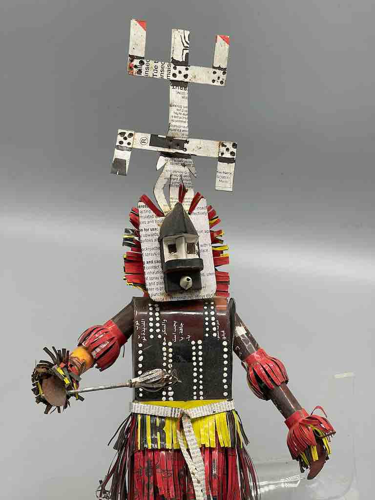 Traditionally, all children in Africa make their own toys out of found materials: discarded cans, wire, old sandals, tires, etc. Following this long-standing tradition modern artists in Mali are creating art in all kinds of forms. This one of a kind statue was made by such an artist, confirming the importance of contemporary art in modern Africa.