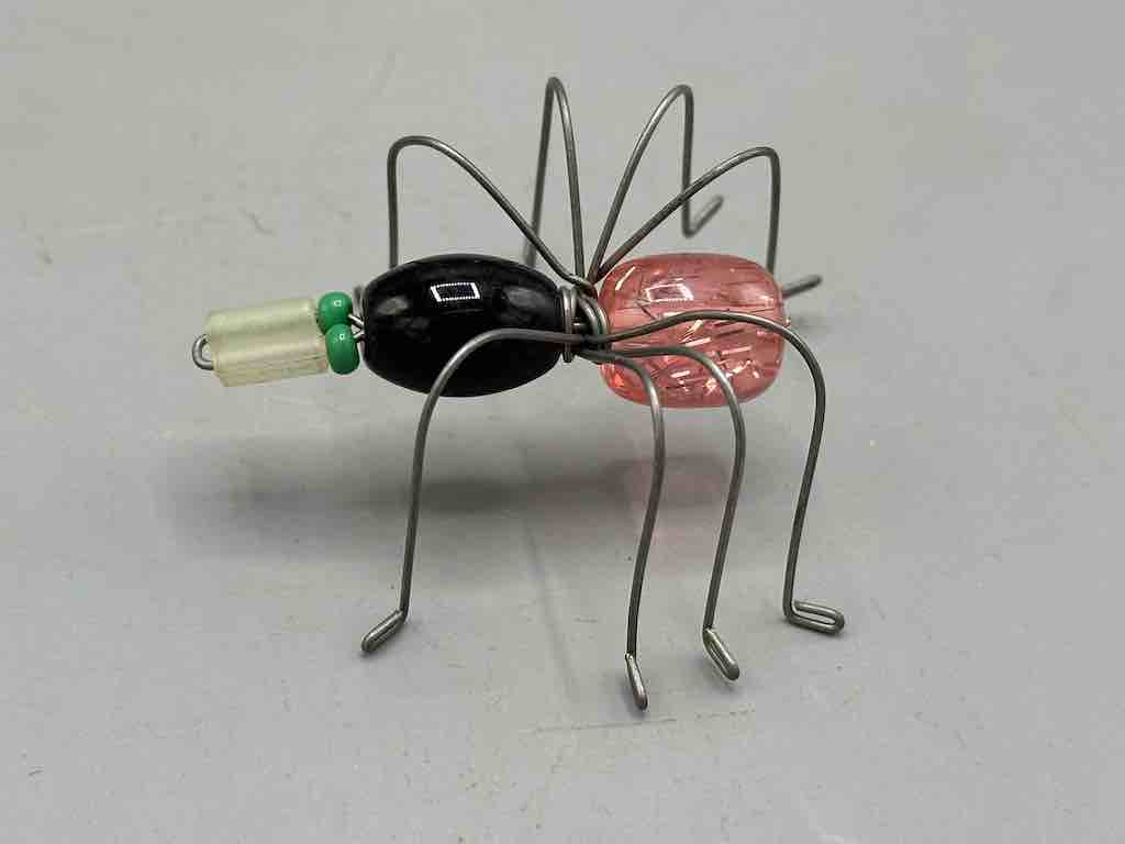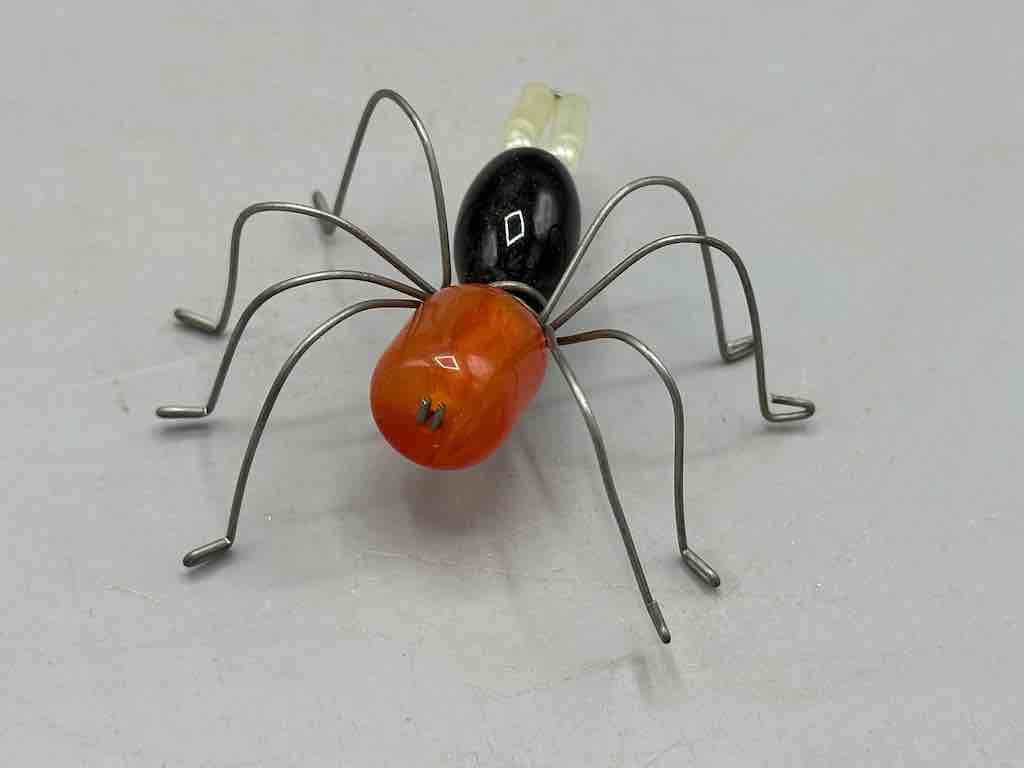 This all handmade small beaded wire spider is made from modern, imported beads and recycled wire by talented artisans in Burkina Faso. We have 4 variations of this same bug.