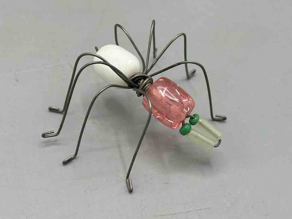 Beaded Wire Decor African Small Peach/White Spider Insect