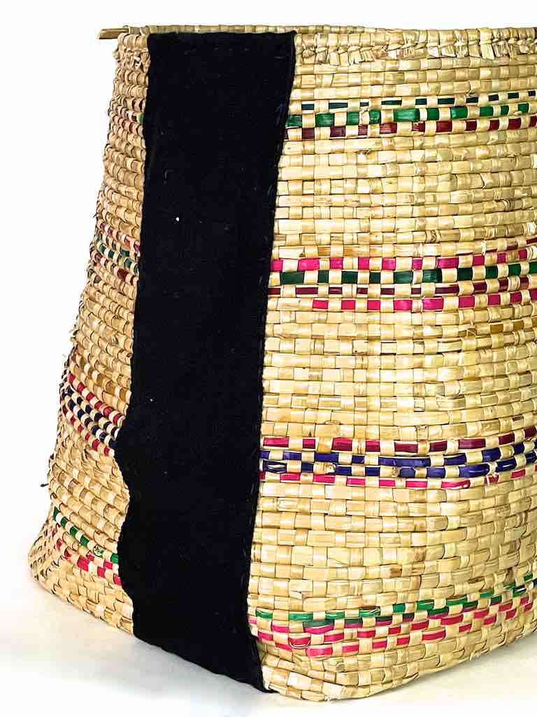 Deep Vintage Flexible Swampgrass Basket, Cloth Accent - Benin