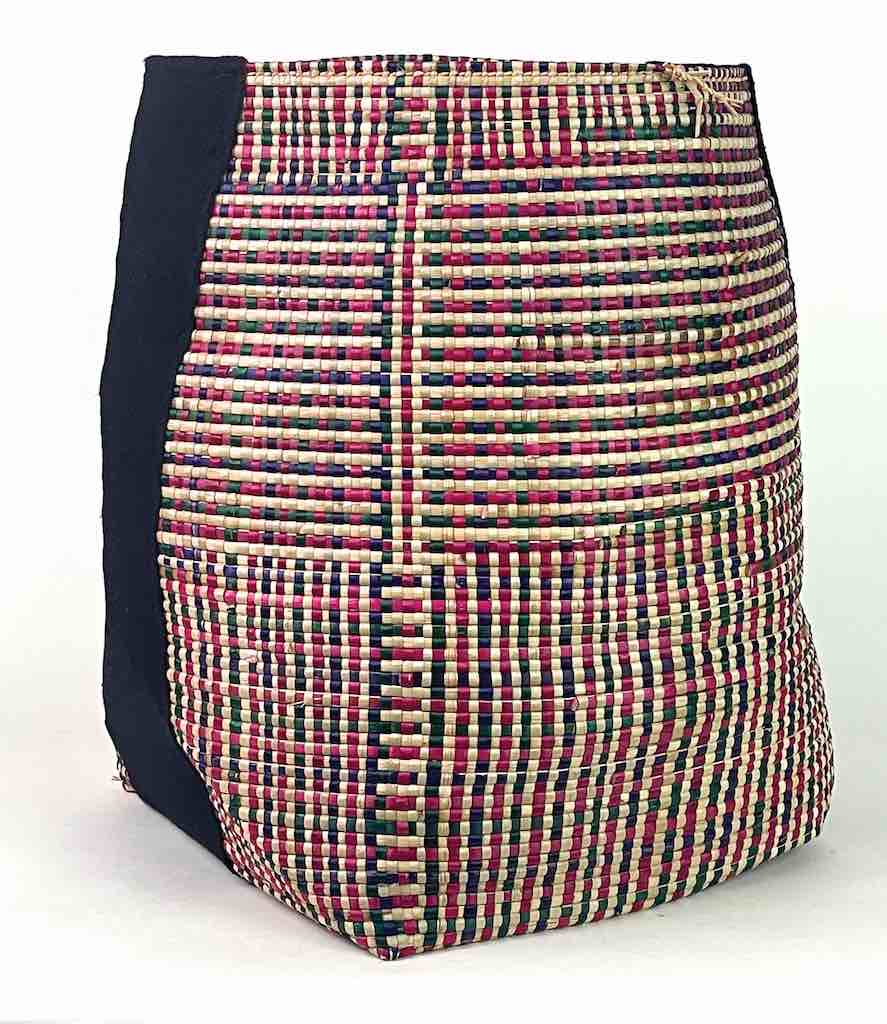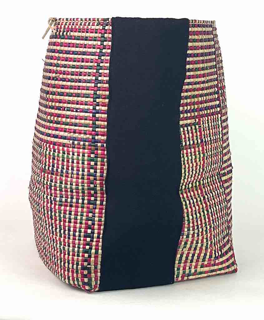 Deep Vintage Flexible Swampgrass Basket, Cloth Accent - Benin
