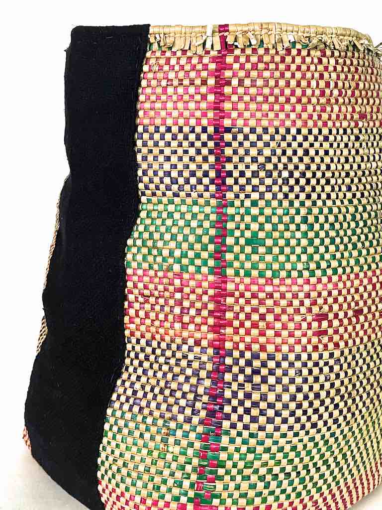 Deep Vintage Flexible Swampgrass Basket, Cloth Accent - Benin