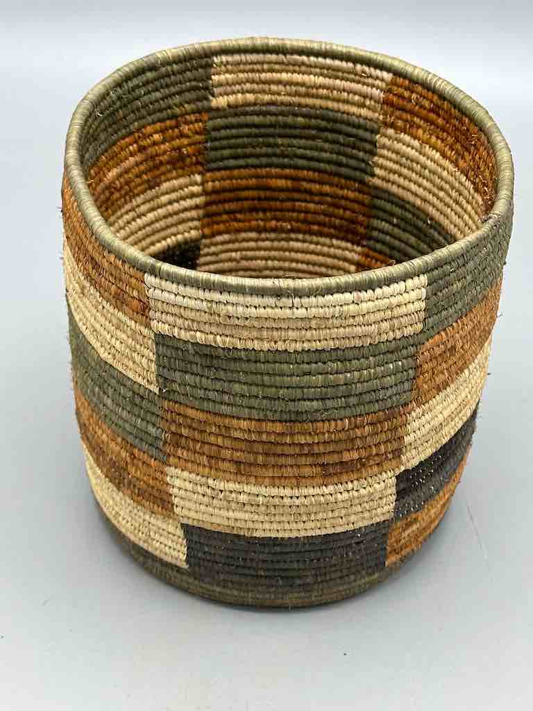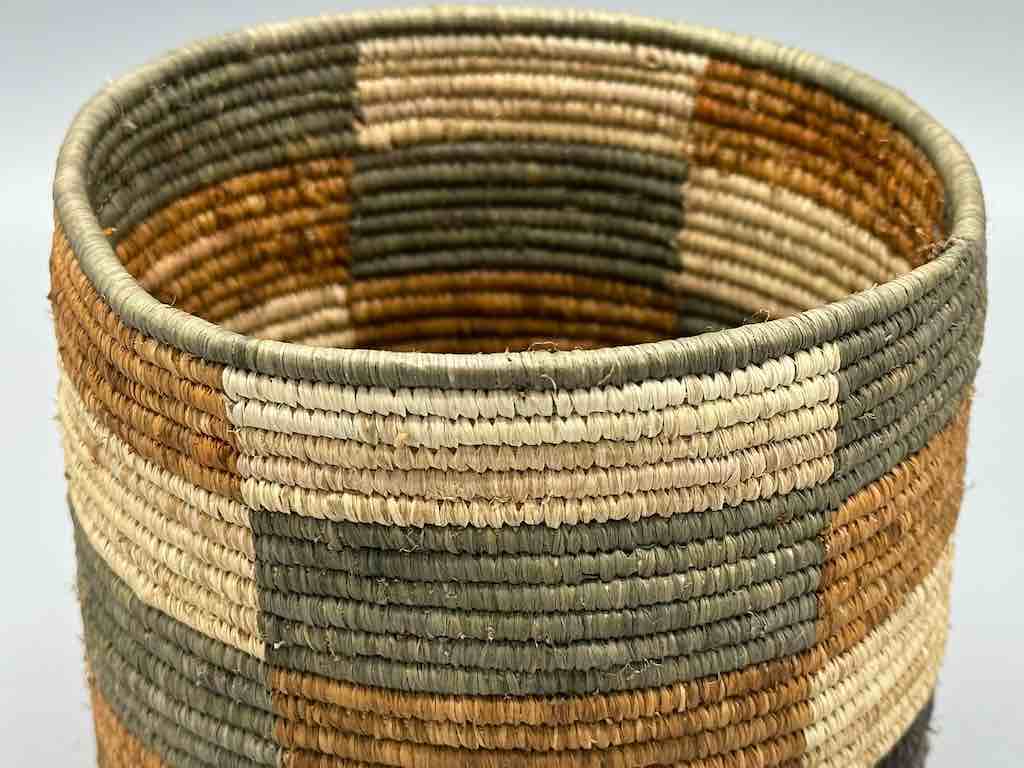 Earth tone checkerboard cylinder tightest weave Batwa basket