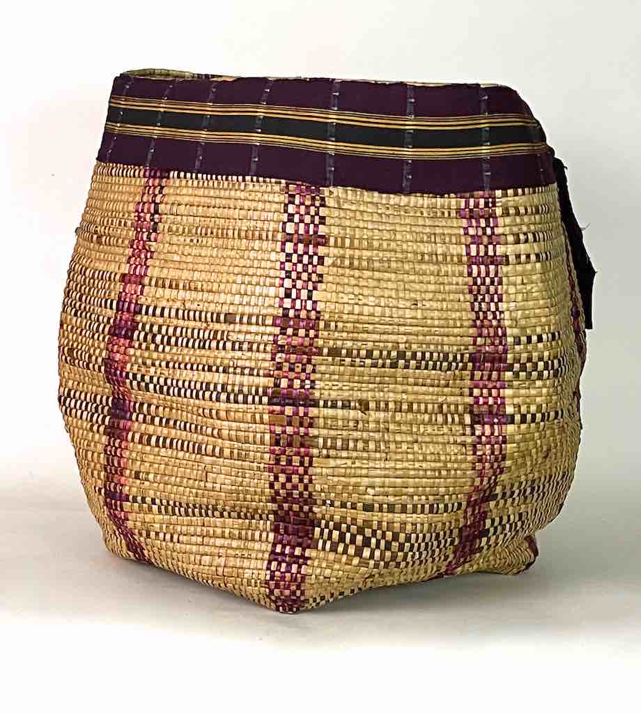 Large Deep Flexible Swampgrass Basket, Cloth Rim - Benin