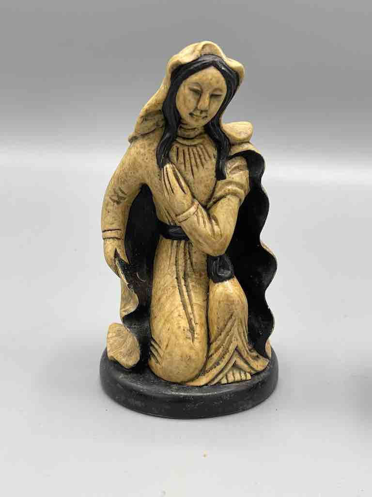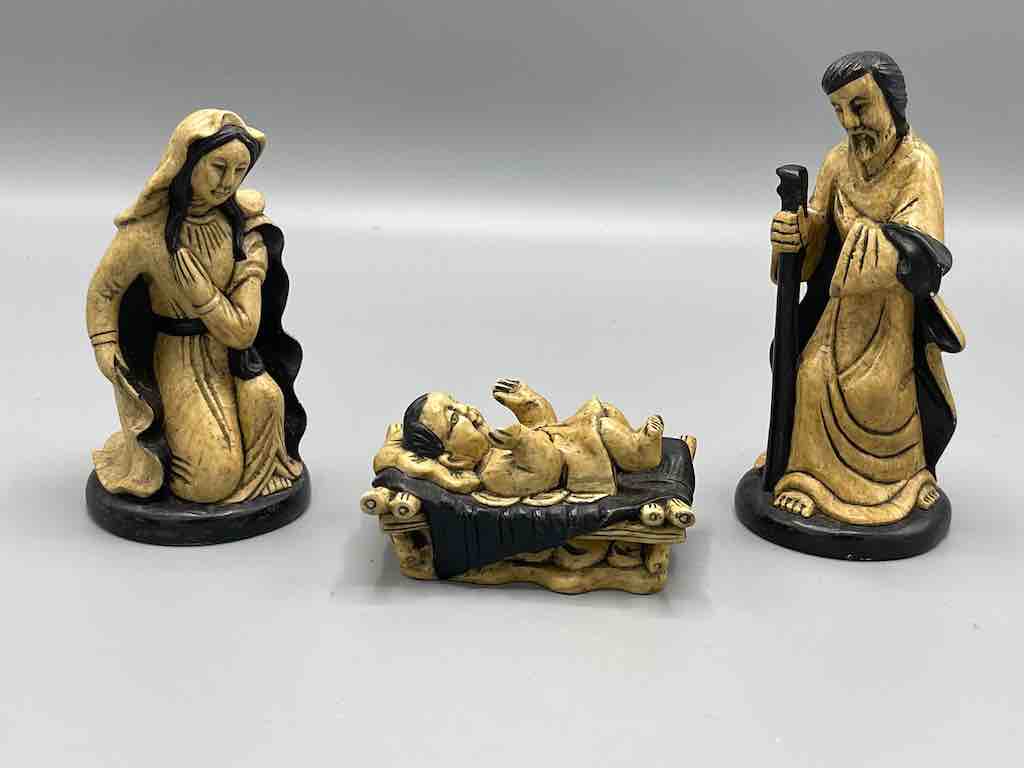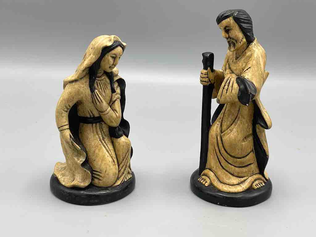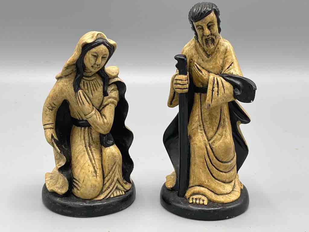 Mary is 4 1/2" tall (11 cm). Joseph 5 1/8" (13 cm). Jesus 3 1/4 x 2 1/4 x 1 5/8" tall (8 x 6 x 4 cm)